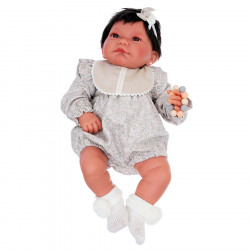 Мануэла - очаровательная кукла-младенец размером 40 см создана испанской кукольной фабрикой Мунекас Антонио Хуан. У Мануэлы симпатичное личико, карие глаза, обрамленные густыми ресницами и густая шевелюра, украшенная кружевной повязкой с бантом. Тело куклы - мягконабивное, а ручки, ножки и голова изготовлены из высококачественного винила. с покрытием soft touch, бархатистого на ощупь. Такая конструкция игрушки создает невероятное ощущение настоящего малыша на руках. Комплект одежды Мануэлы из органического хлопка создан специально для нее испанскими дизайнерами и включает в себя боди, нагрудник и носочки.