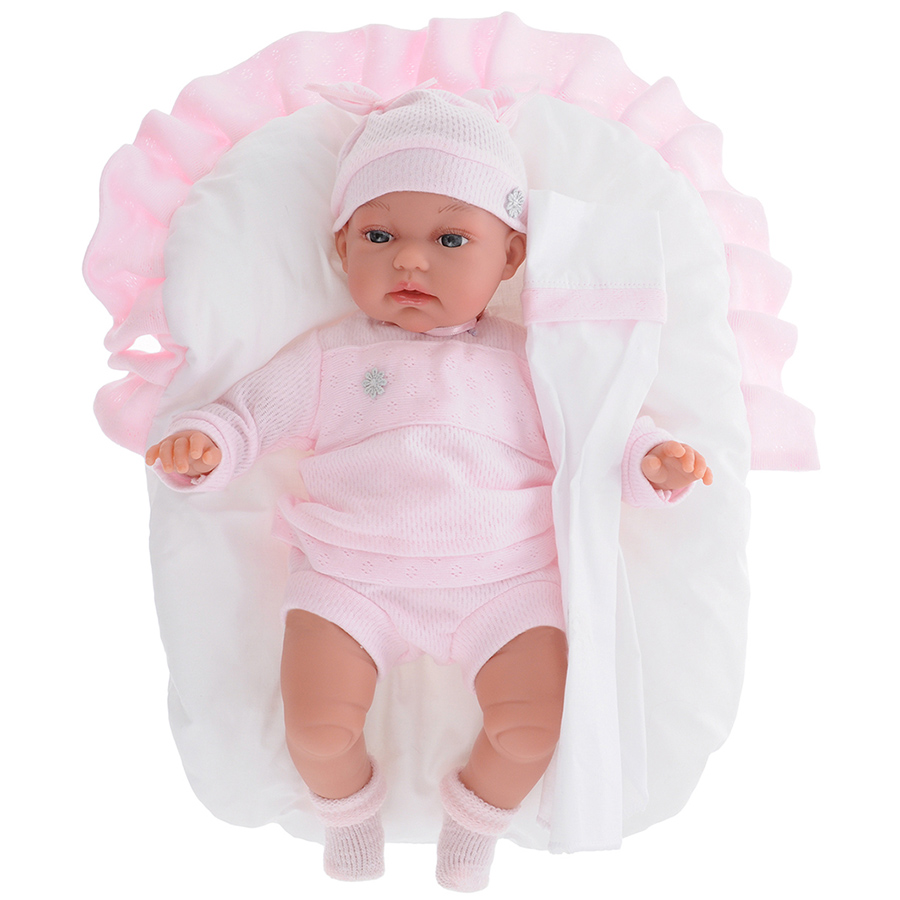 Аида - очаровательная кукла-малышка размером 34 см. У Аиды серьёзное милое личико с выразительными голубыми глазами. Кукла реалистична, с подвижными ручками и ножками. Тело куклы - мягконабивное, а ручки, ножки и голова изготовлены из высококачественного винила с покрытием soft touch, бархатистого на ощупь. Такая конструкция игрушки создает невероятное ощущение настоящего малыша на руках.