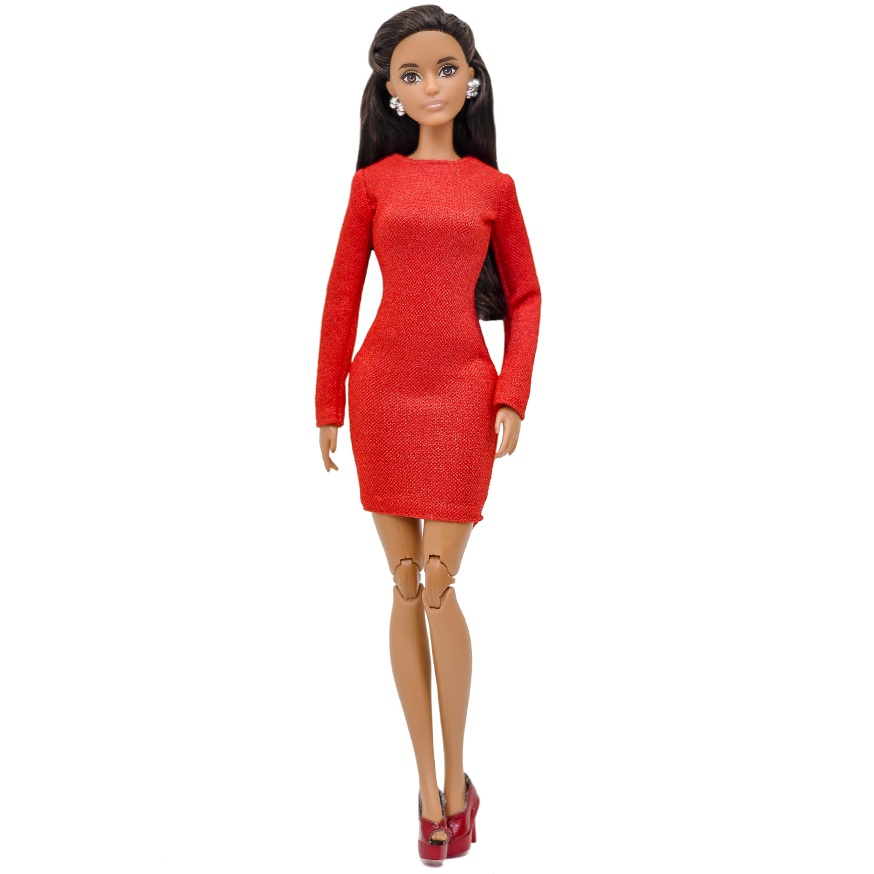 Одежда для кукол Барби - Красное платье-футляр. Подходит для кукол типа Barbie высотой 29 см.