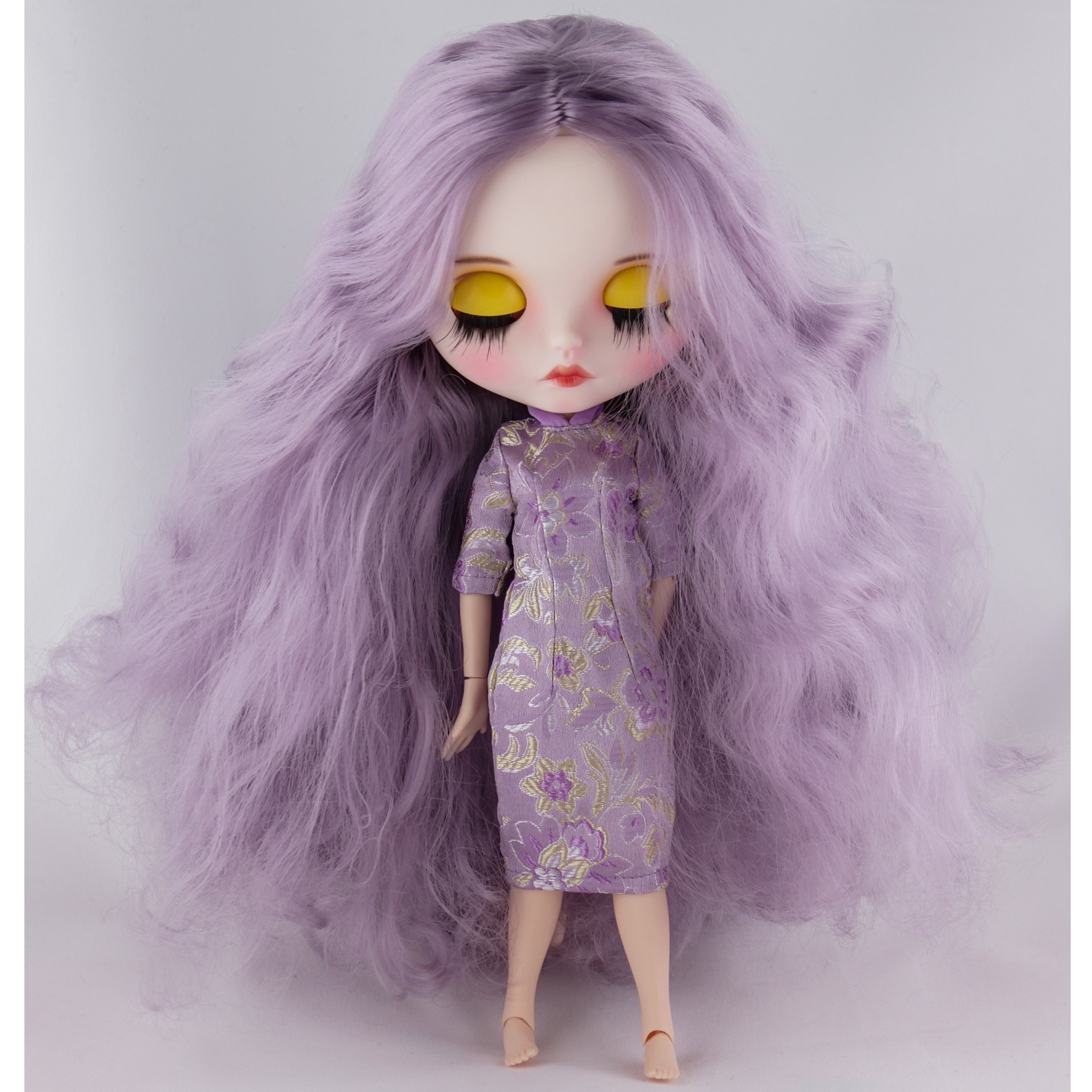 Кукла Блайз (Blythe) в сиреневом платье, сиреневые волосы.