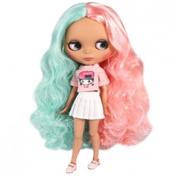 Кукла Блайз (Blythe) в белой юбке, бирюзово-розовые волосы.