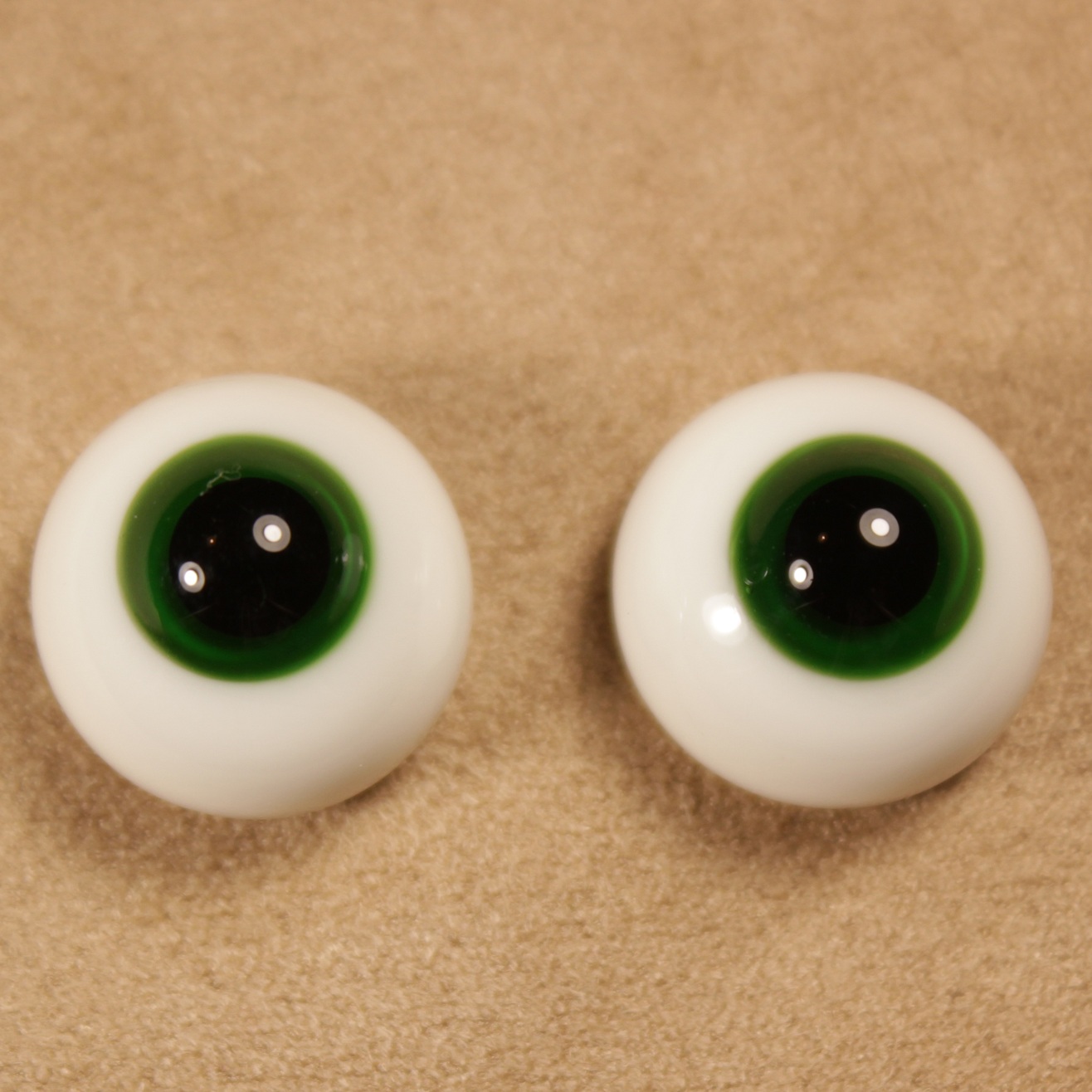 Стеклянные круглые глаза для кукол, зеленые 10 (стекло, 14 мм).