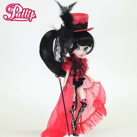 Пуллип в образе прекрасной танцовщицы Айры! У девушки прекрасные голубые глаза, они обрамлены розовыми тенями, нарисованы стрелки. Черные волосы собраны в хвост набок. Роскошный экстравагантный сценический костюм выполнен в красном и черном цвете. Голову венчает шляпка с перьями и вуалью. На плечи накинута меховая накидка и длинный полупрозрачный халатик с рукавами-фонариками. Под ней красуется изящный корсет с множеством бантиков, трусики с многослойной кружевной отделкой. На ножки надеты ажурные чулки с атласными лентами и туфли на каблуке. Образ можно дополнить тростью и ярким меховым боа!