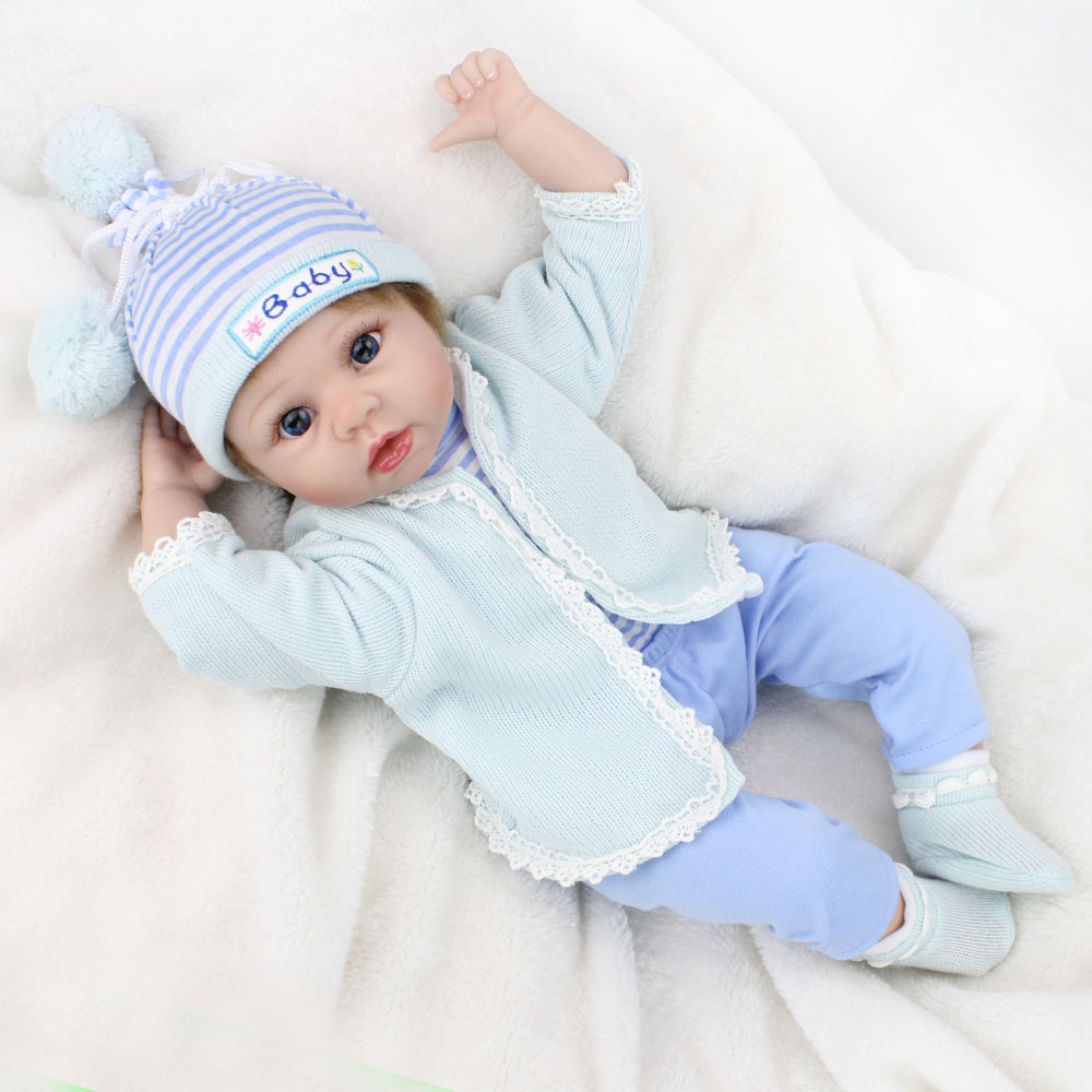 Кукла Реборн мягконабивная (Reborn Cloth Body Doll 22 inch) Мальчик в голубом вязаном свитере (56 см).