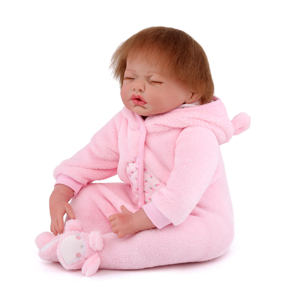 Кукла Реборн мягконабивная (Reborn Cloth Body Doll 22 inch) Мальчик в розовом ночном халате с ушками (56 см).