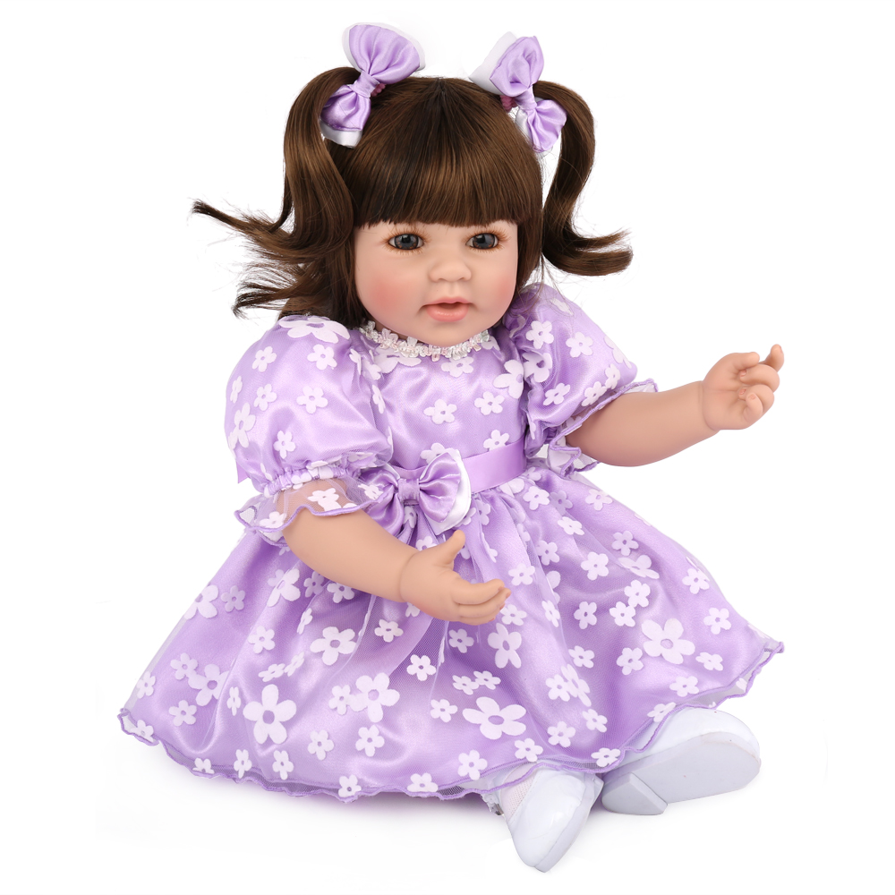 Кукла Реборн мягконабивная (Reborn Cloth Body Doll 20 inch) Девочка в пышном фиолетовом платье с цветочками (51 см).