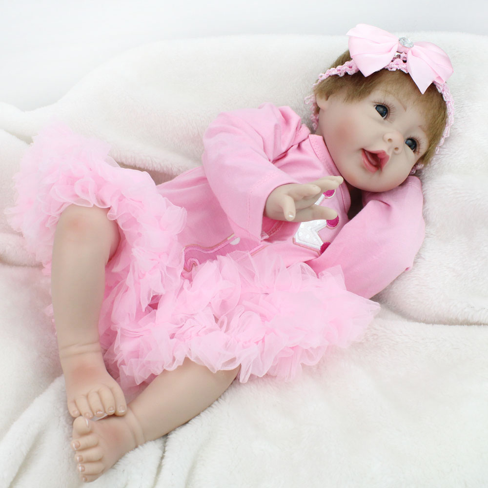 Кукла Реборн мягконабивная (Reborn Cloth Body Doll 22 inch) Девочка в розовом платье с короной (56 см).