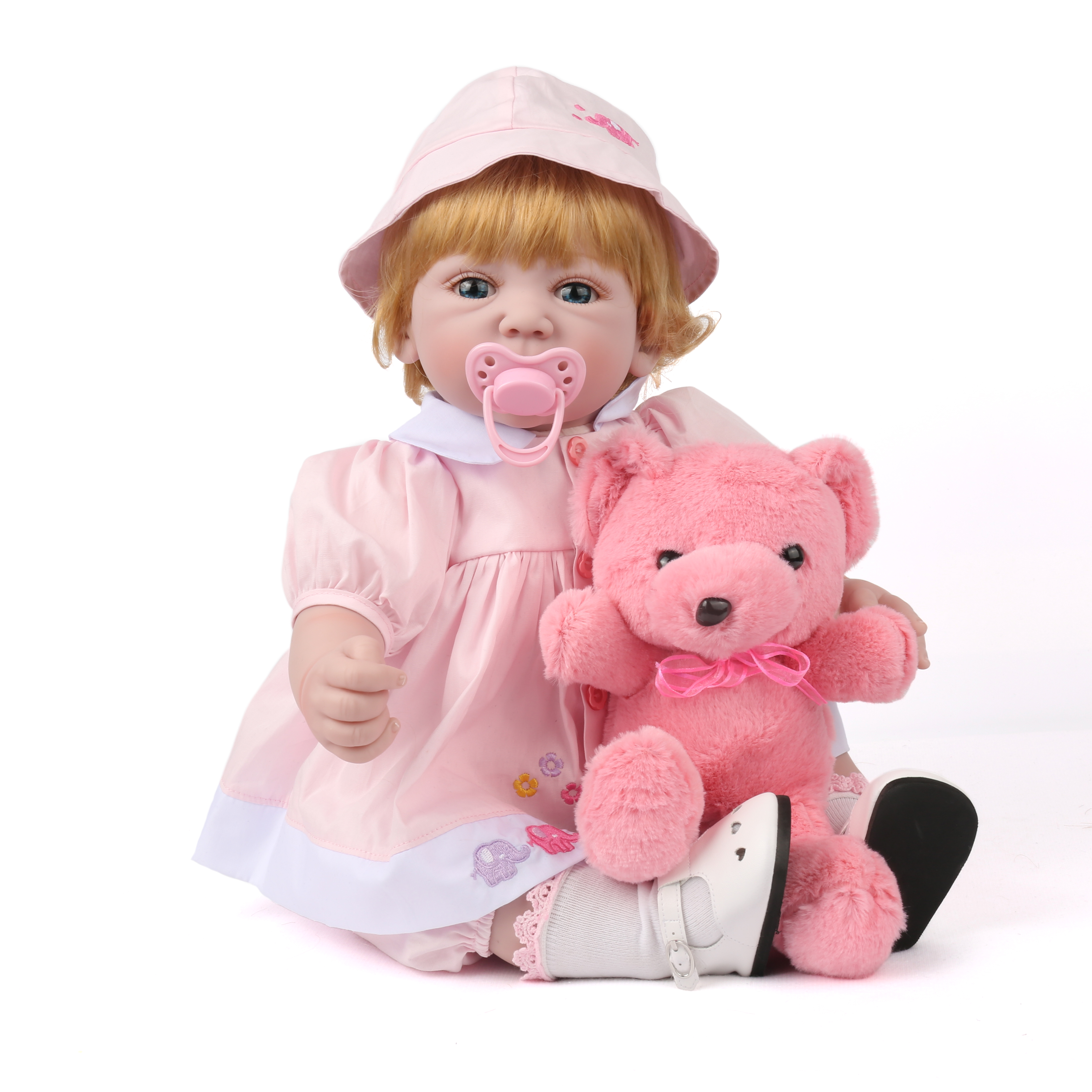 Кукла Реборн мягконабивная (Reborn Cloth Body Doll 22 inch) Девочка в розовом платье и панамке (56 см).