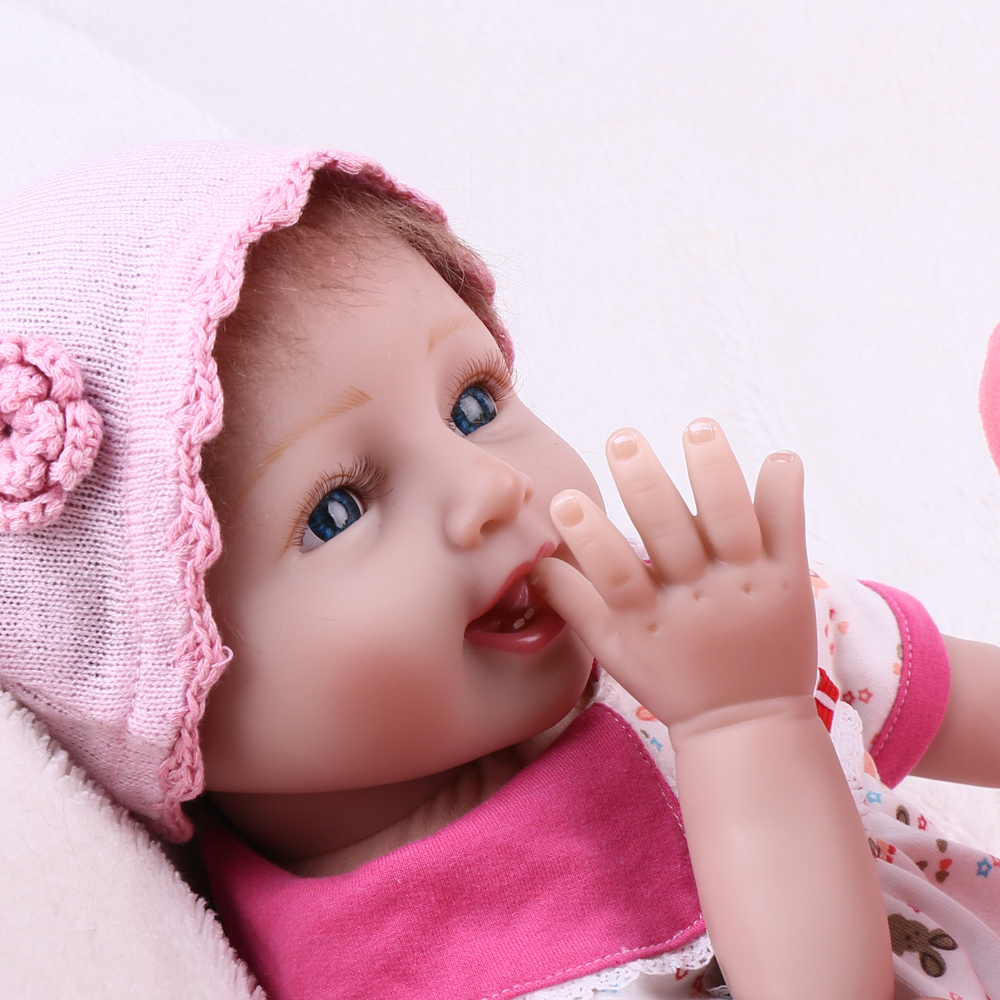 Кукла Реборн мягконабивная (Reborn Cloth Body Doll 22 inch) Девочка в розовой футболке с игрушкой (56 см).