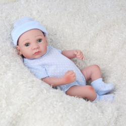 Виниловая кукла Реборн (Reborn Dolls) - Мальчик в голубом ночном комплекте (28 см).
