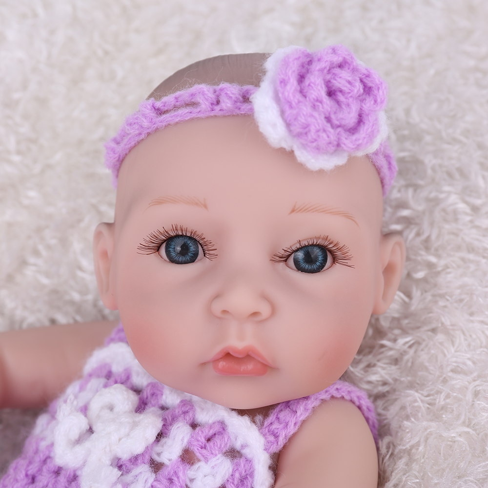 Виниловая кукла Реборн (Reborn Dolls) - Девочка в фиолетовом вязаном свитере (28 см).