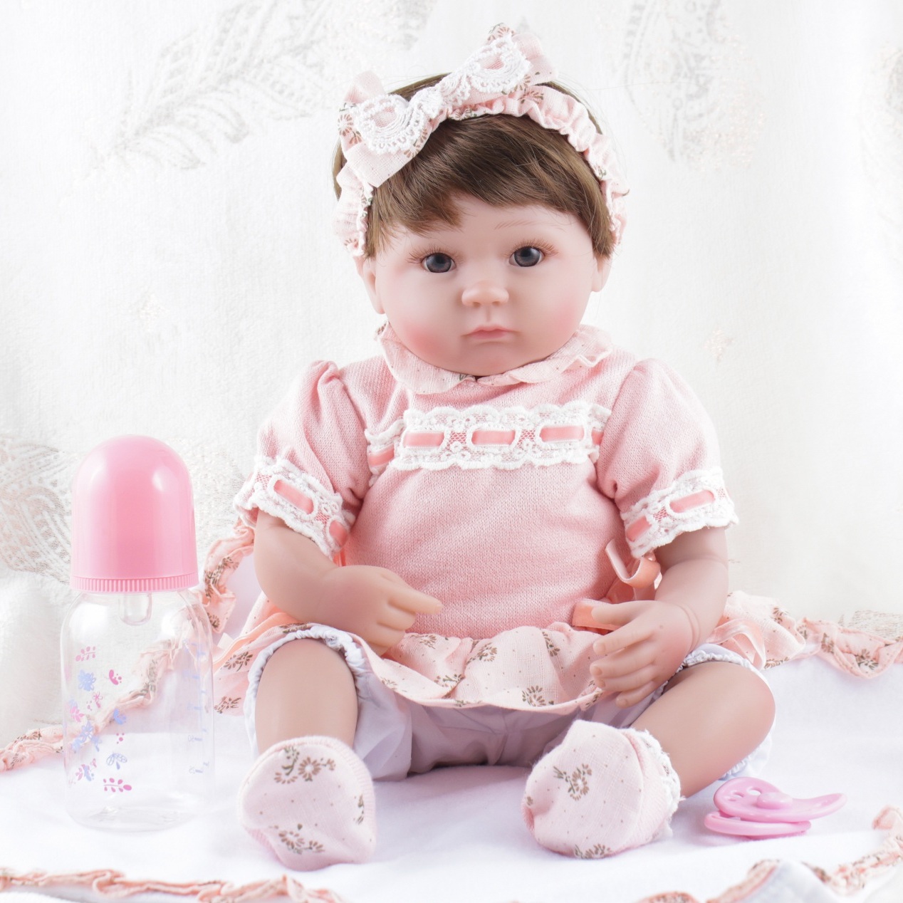 Виниловая кукла Реборн (Reborn Dolls) - Девочка в кремовом платье (40 см).