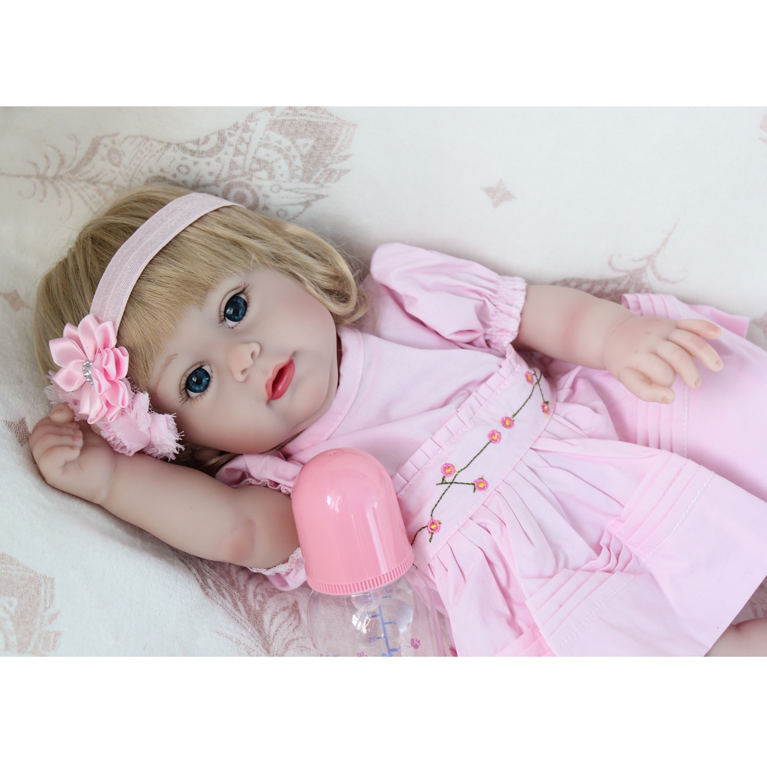 Виниловая кукла Реборн (Reborn Dolls) - Девочка в розовом платье с повязкой (43 см).