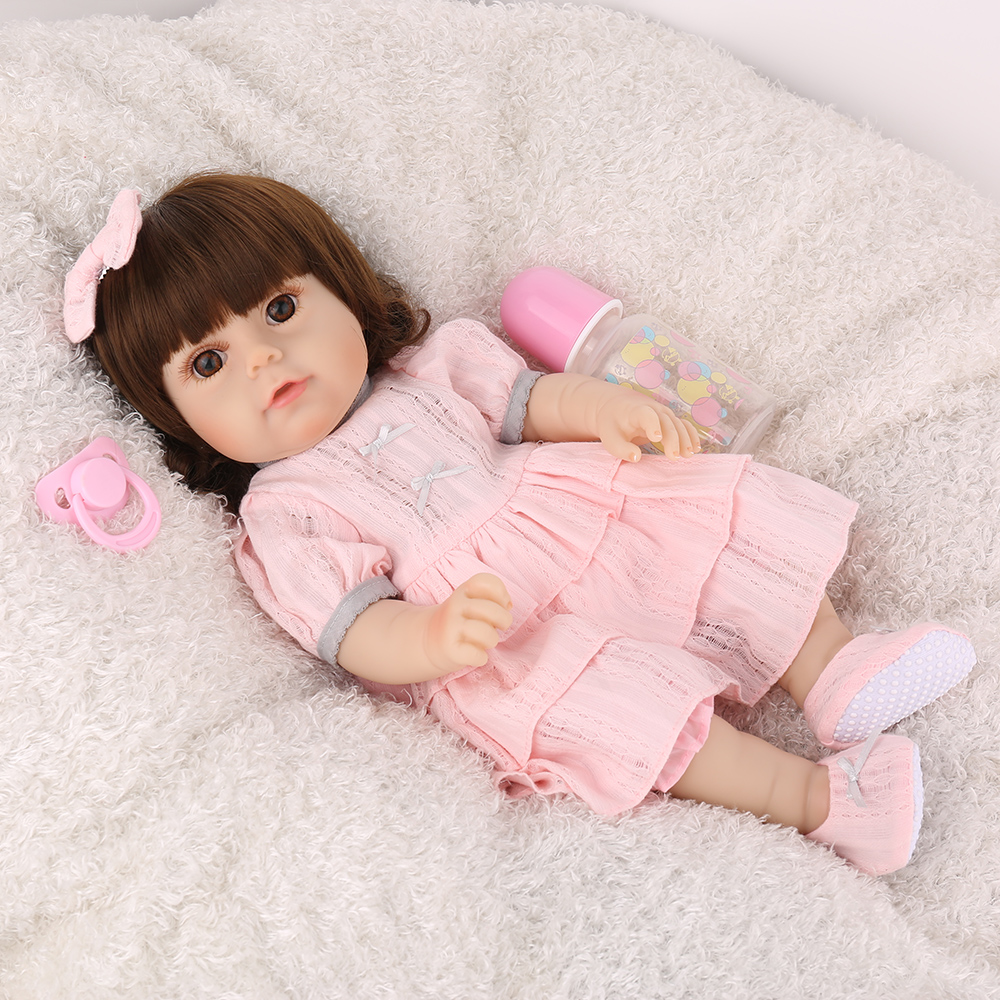 Виниловая кукла Реборн (Reborn Dolls) - Девочка в кремовом платье (43 см).