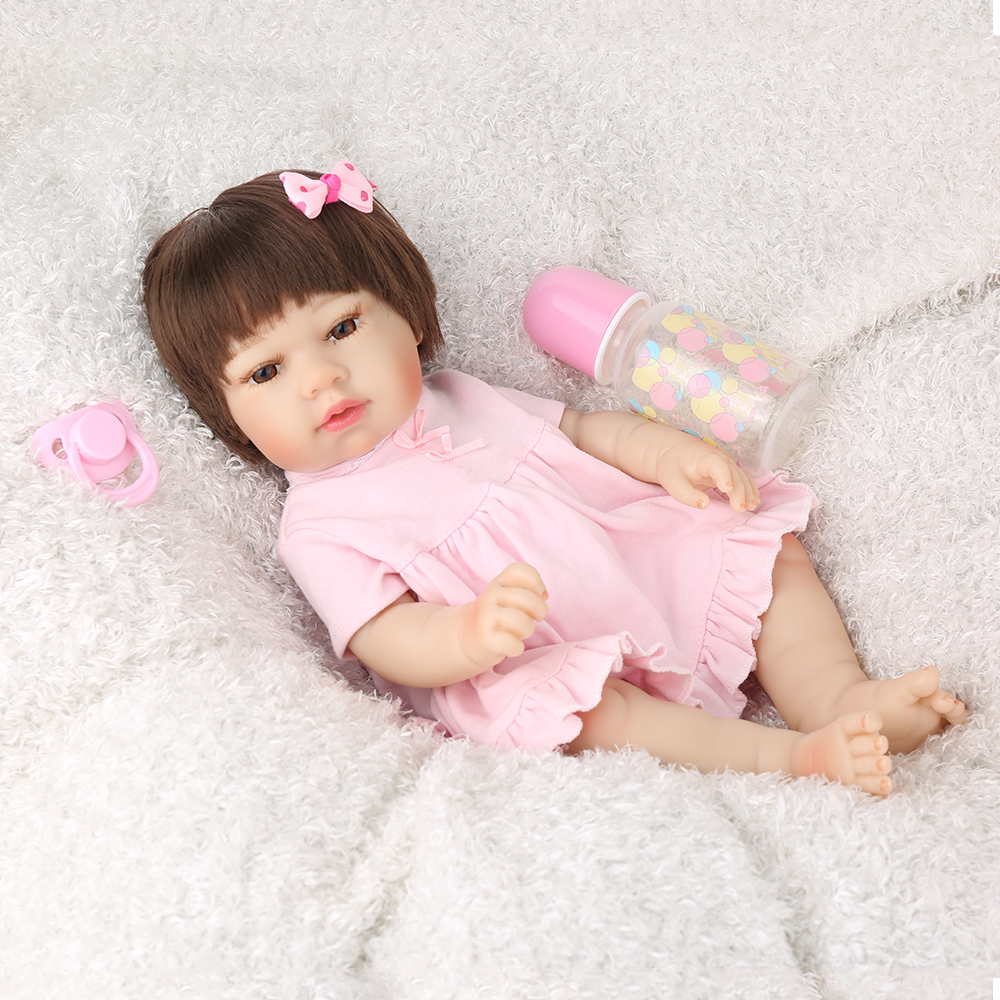 Виниловая кукла Реборн (Reborn Dolls) - Девочка в розовом платье и шортиках (43 см).