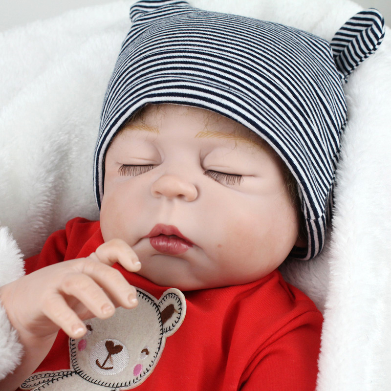Кукла реборн виниловая (Reborn Full Vinyl Doll 22 inch) Мальчик в красном свитере (56 см).