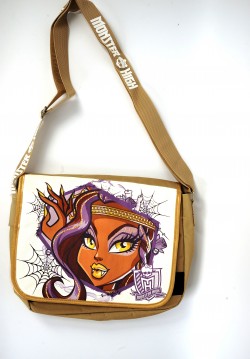 Сумка-планшет молодежная Мonster high. Размеры: 34*8*26см , с ремнем, цвет бежевый с золотом.